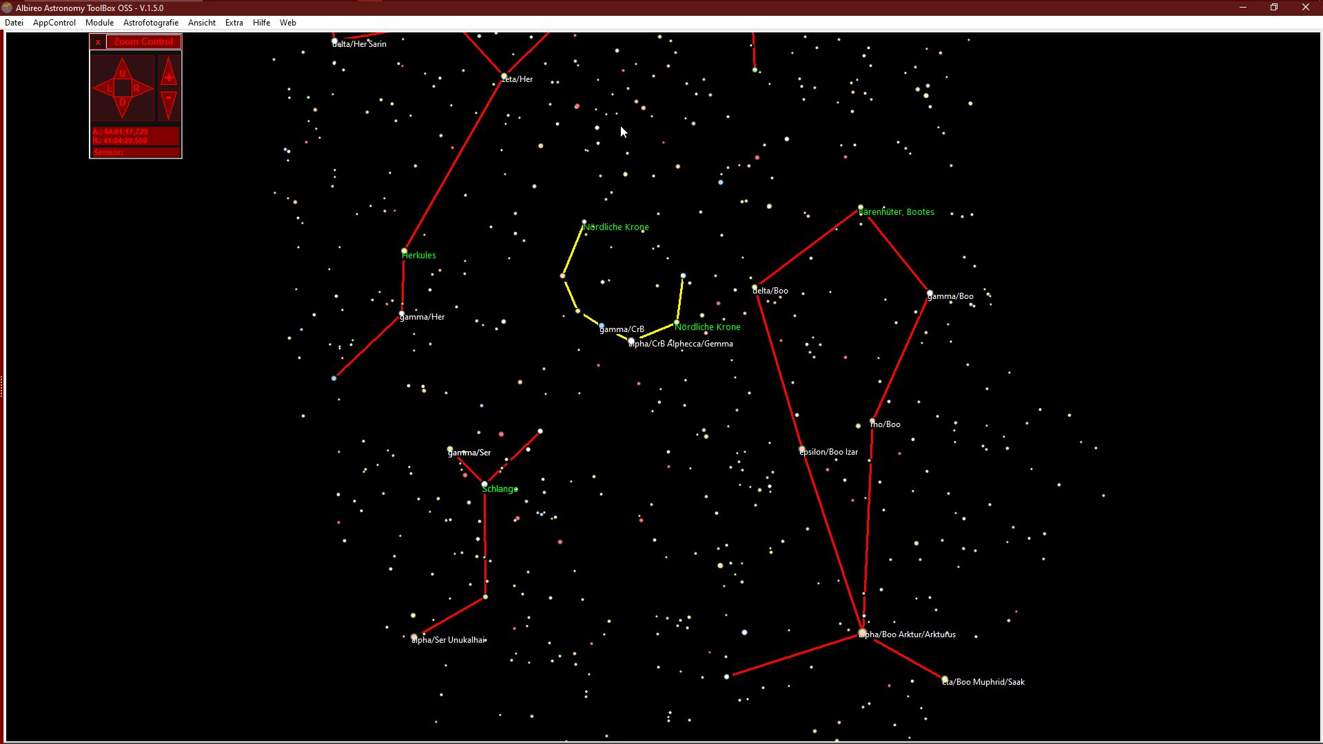 Wir begannen den neunten Kurstag mit unserer heiteren Sternbild-Rateshow. Das Sternbild, um das es ging, ist zwar nicht besonders groß – aber dafür umso leichter einprägsam. Wenn man weiß, wo es steht – zwischen den Sternbildern Bärenhüter und Herkules: Es ist die Nördliche Krone (Coronae Borealis) oder auch kurz CrB. Zur Standardbeobachtungszeit um 23:00 MESZ steht sie im April bereits halbhoch im Nordosten.