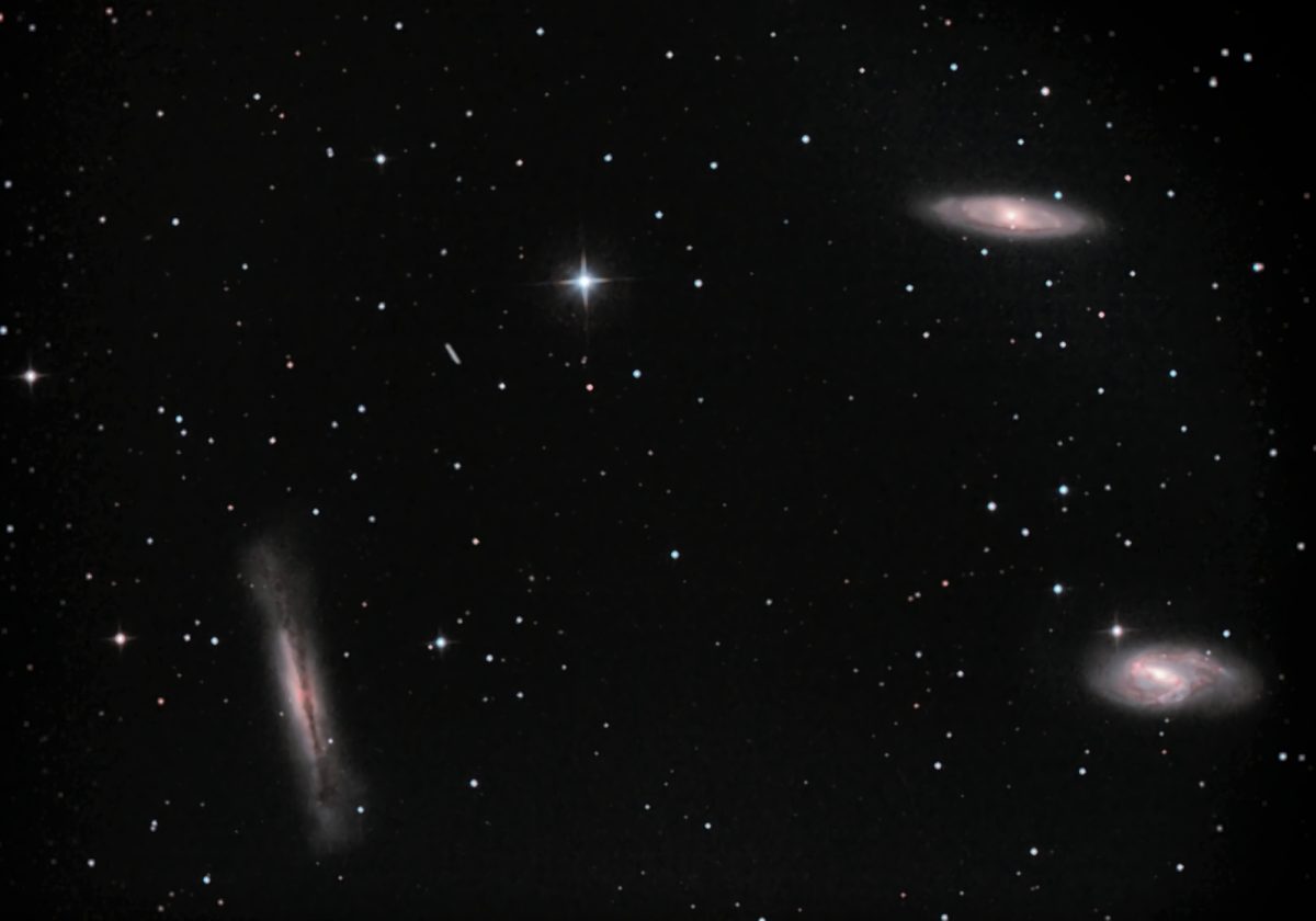 Weitere näher gelegene Galaxien befinden sich in 10 bis 50 Millionen Lichtjahren von unserem Sonnensystem. Viele von Ihnen haben es in den Messierkatalog geschafft und sind bereits mit Ferrohren mittlerer Bauart zu erkennen; ein dunkler, mondloser Nachthimmel vorausgesetzt. Bereits im ersten Frühlingssternbild, dem Löwen, wimmelt es von Galaxien, ganz zu schweigen von der Jungfrau, den Jagdhunden und dem Haar der Berenike. Doch auch im uns wohlbekannten Großen Wagen, einem Teilsternbild des Großen Bären, gibt es zahlreiche helle und große Galaxien zu bewundern; etwa die Feuerradgalaxie M101, die Bode-Galaxie M81 oder die Zigarrengalaxie M82.